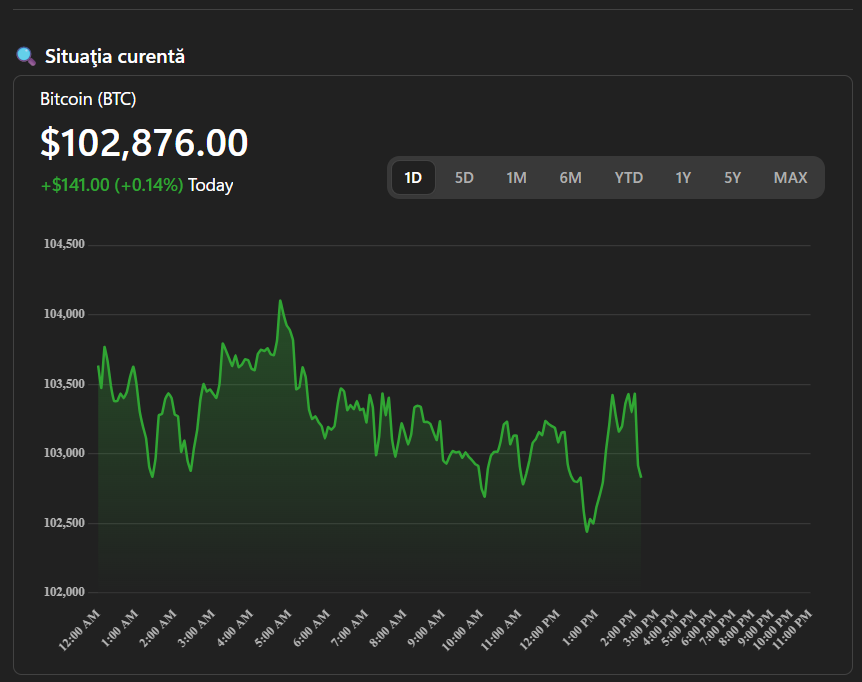 Pe lângă acest context, tensiunile comerciale SUA–China și presiunea inflaționistă asupra energiei au creat o atmosferă de prudență. Activele digitale sunt percepute, în acest moment, mai degrabă ca instrumente speculative decât ca refugiu de valoare, ceea ce explică și consolidarea prețurilor în jurul unor niveluri tehnice importante.